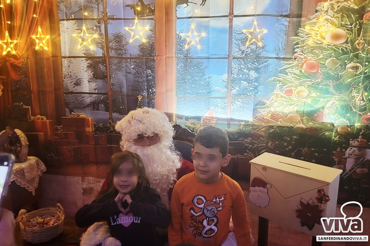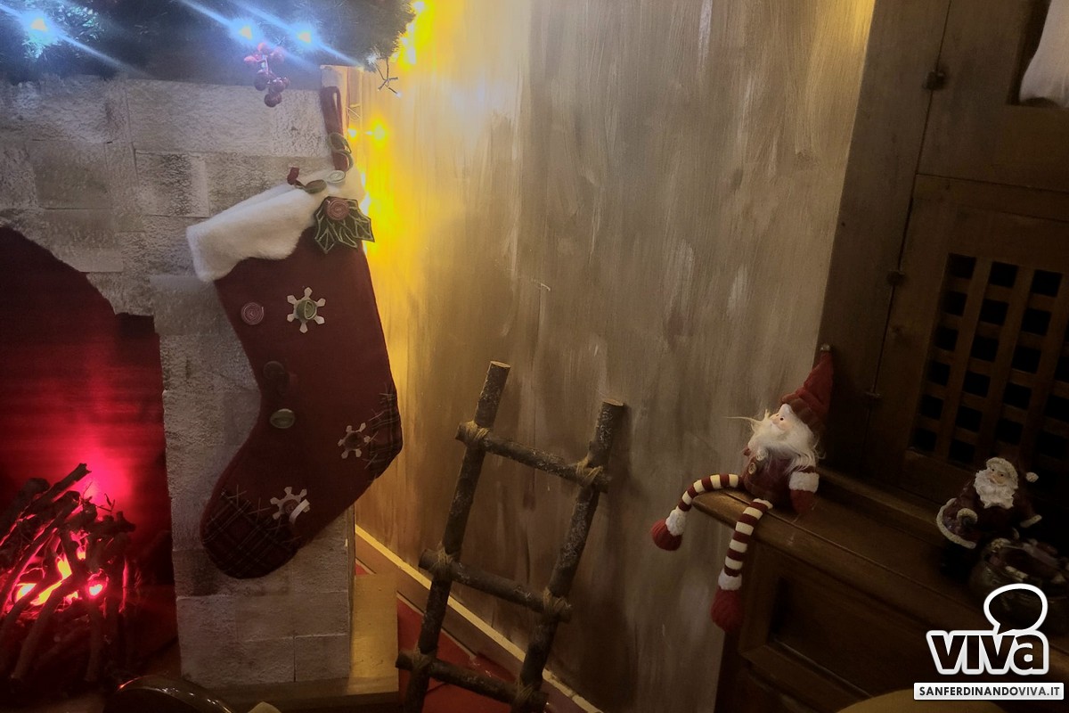 Ma ad attenderli c'era il tanto atteso Babbo Natale, seduto sulla sua poltrona nella sua 'casetta' addobbata – per l'occasione – con tantissimi dettagli: dal caminetto con le calze appese e i pacchi regalo, alla tavola imbandita, al letto vestito di rosso, fino ad arrivare a luci stellari che davano un tocco luminoso alla 'casetta' di Babbo Natale. L'uomo paffuto, nel frattempo, ha scattato foto con i bimbi donando loro delle caramelle.