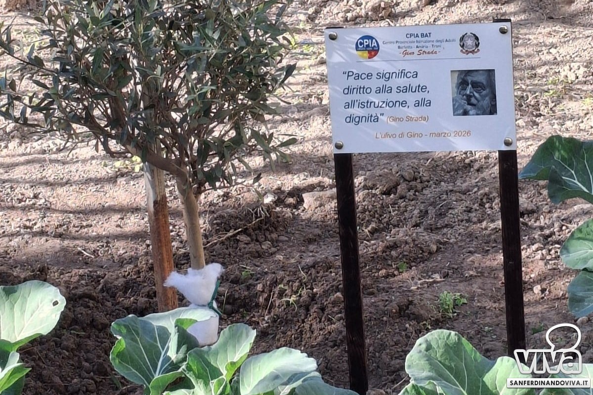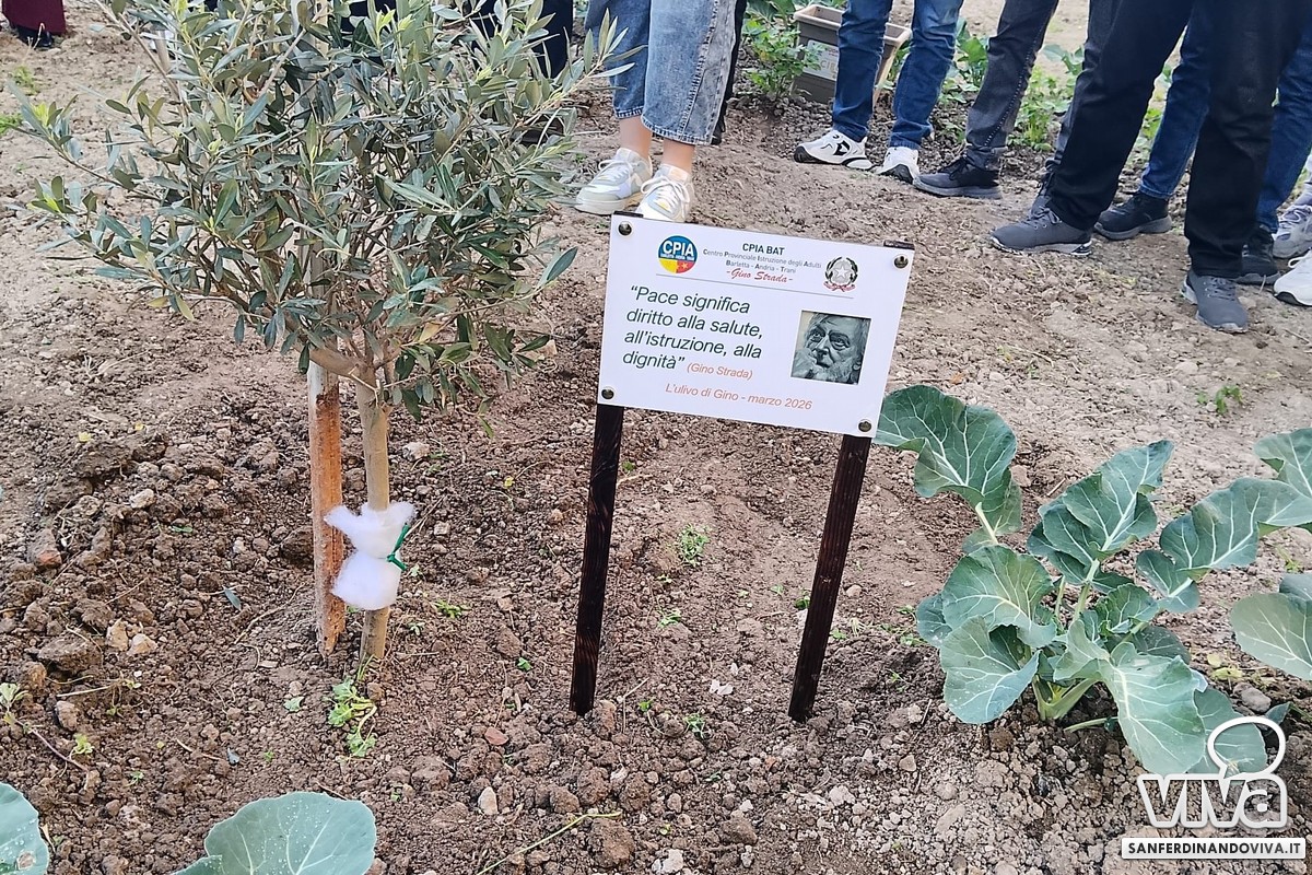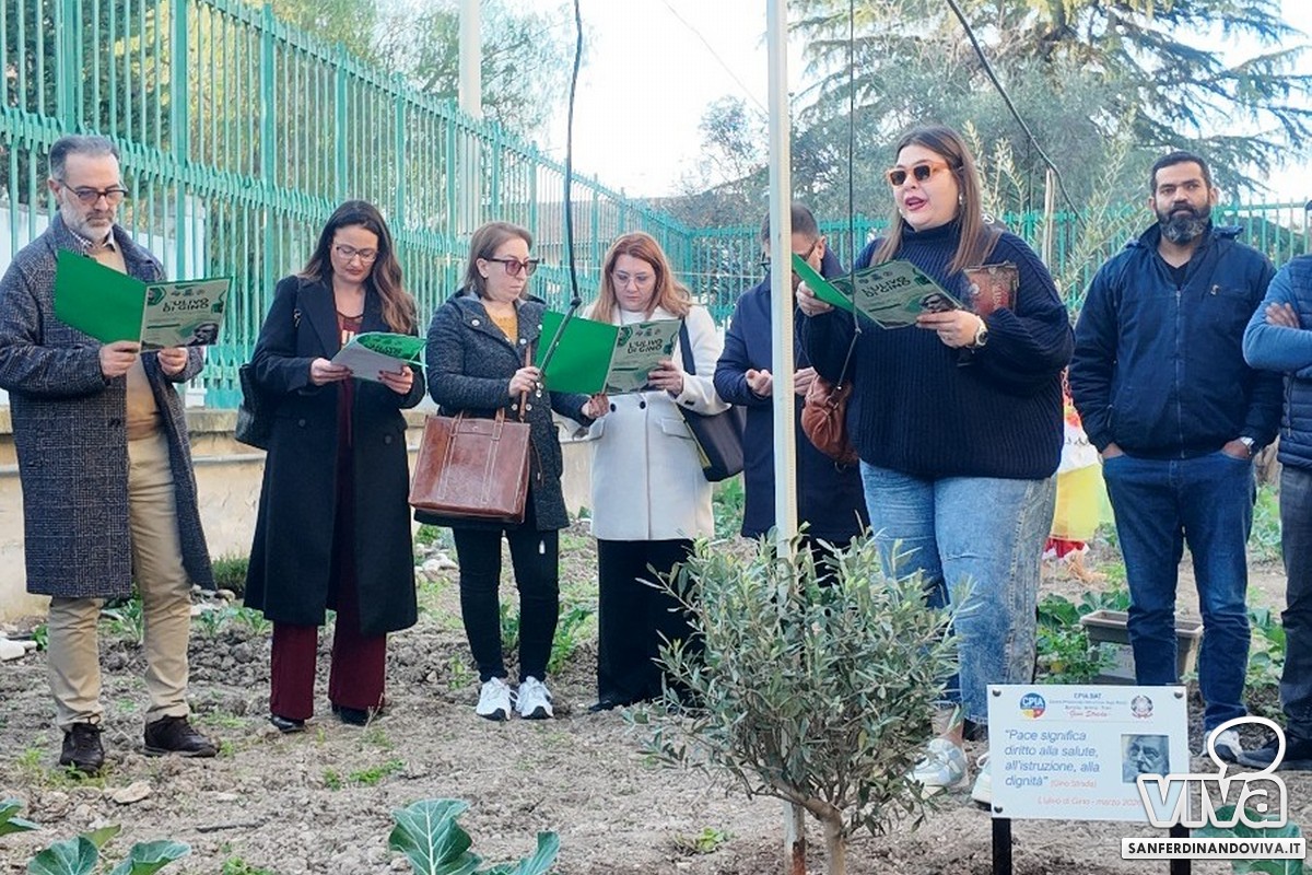 «Abbiamo iniziato dalla messa a dimora di un albero d'ulivo – ancor prima di quello dedicato a Gino Strada – abbiamo arato, pulito le erbacce, realizzato un impianto idrico temporizzato e quest'anno a ottobre abbiamo seminato fave, cavoli, prezzemolo e finocchi. I ragazzi se ne sono presi cura – insieme a me e al collaboratore Sabino Dinunno che ha messo a disposizione i suoi attrezzi agricoli. Lungo il muro di cinta si trova anche un percorso di piante aromatiche e poi – durante quest'evento – abbiamo messo a dimora l'ulivo di Gino Strada, che è stato messo in 11 sedi – ovvero le sedi del CPIA».