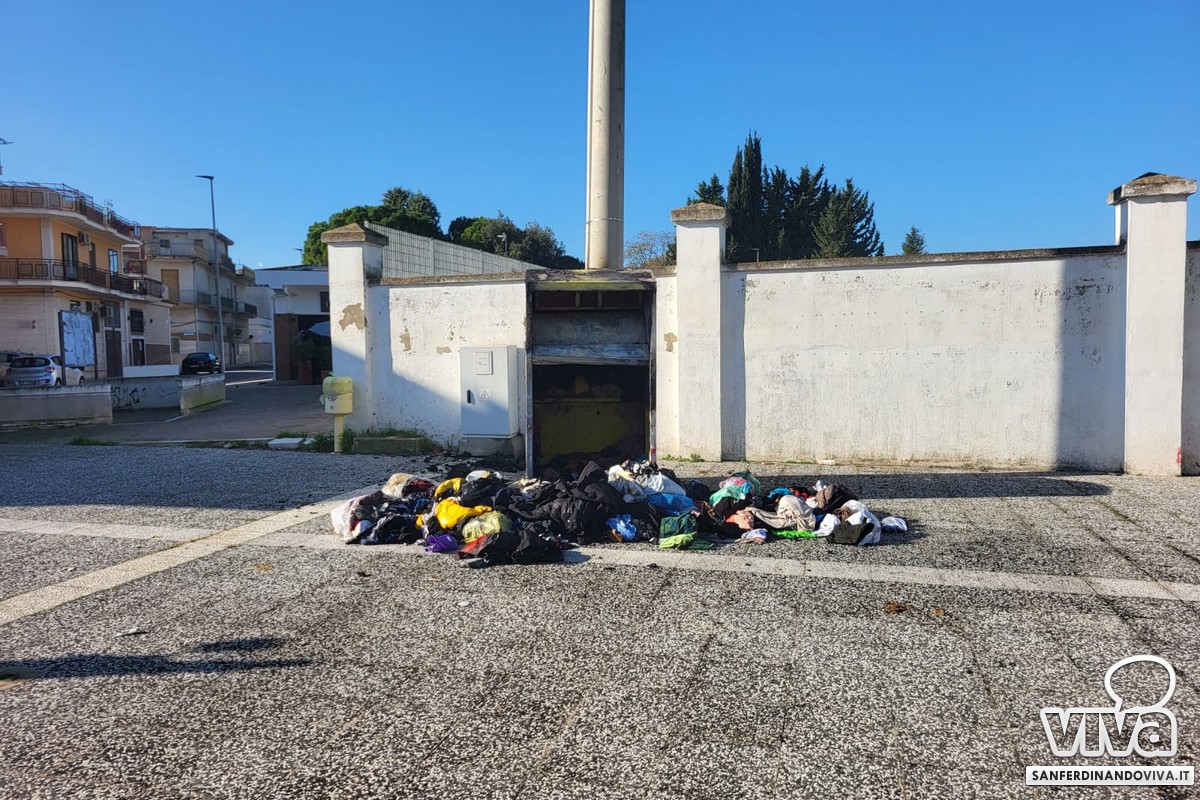 Il bidone è per altro situato in Via Pasquale Squicciarini, insomma chiunque entri o esca da San Ferdinando si troverà davanti a sé un 'quadretto' triste è indecoroso: una quantità innumerevole di indumenti – alcuni completamente carbonizzati – che non solo non potranno più essere utilizzati, ma 'offriranno' una scena di disordine, caos e sporcizia.