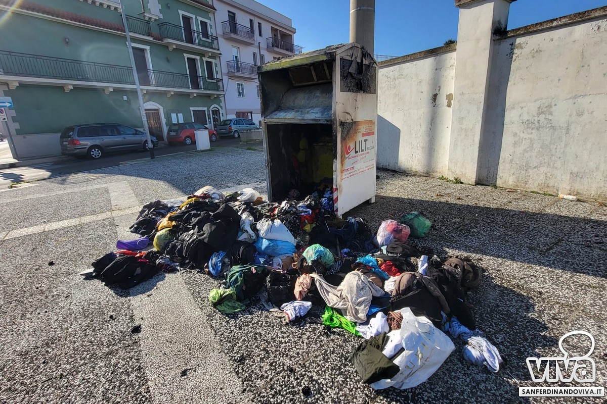 In pieno periodo natalizio San Ferdinando non trova gioia né pace: dopo i furti e gli assalti ecco che arriva un altro evento spiacevole. Questa volta si tratta di un bidone per la raccolta di indumenti usati al quale è stato dato fuoco.