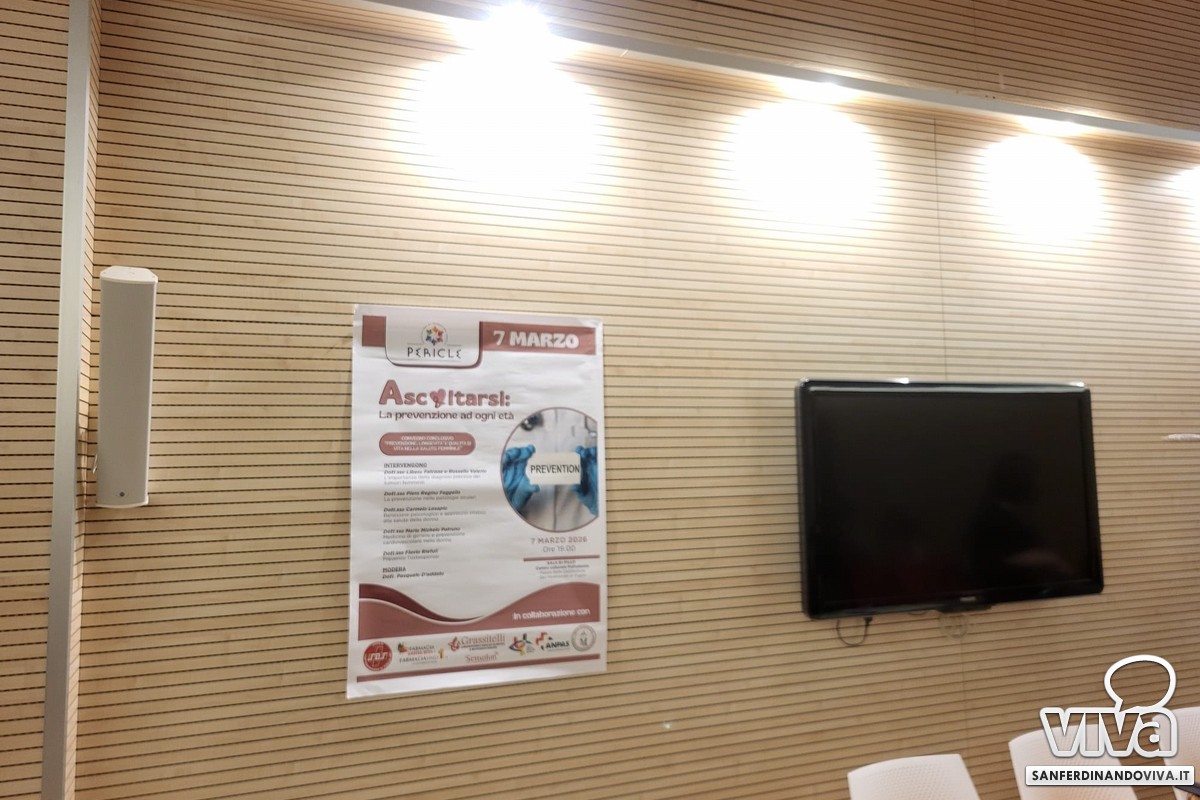 L'evento è stato organizzato dall'associazione Pericle – presenti anche Annalisa Delvecchio, Elena Pestillo e Laura Piazzolla - in collaborazione con l'SOS di San Ferdinando di Puglia, la farmacia Santa Rita, il laboratorio analisi cliniche e microbiologiche Grassitelli, con l'Unione Italiana dei Ciechi e degli Ipovedenti, con l'Anpas comitato regionale Puglia e il nucleo della protezione civile di San Ferdinando di Puglia.
