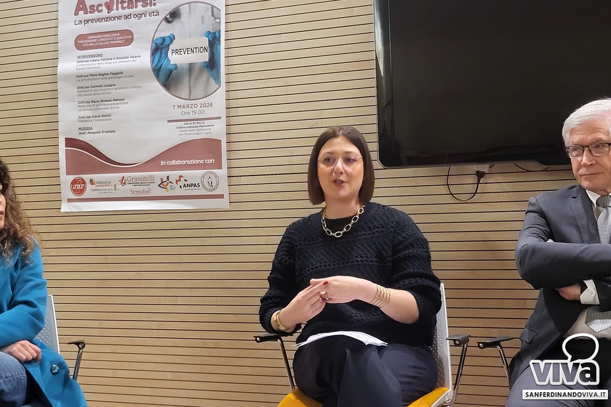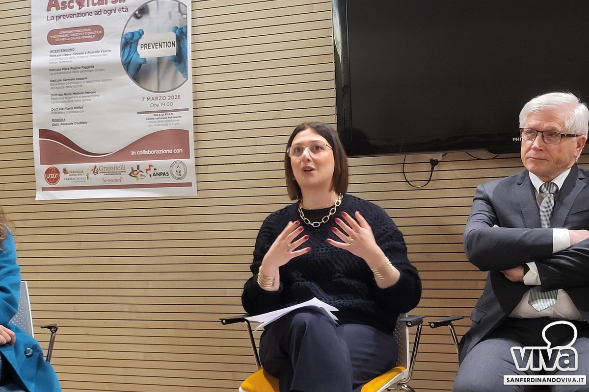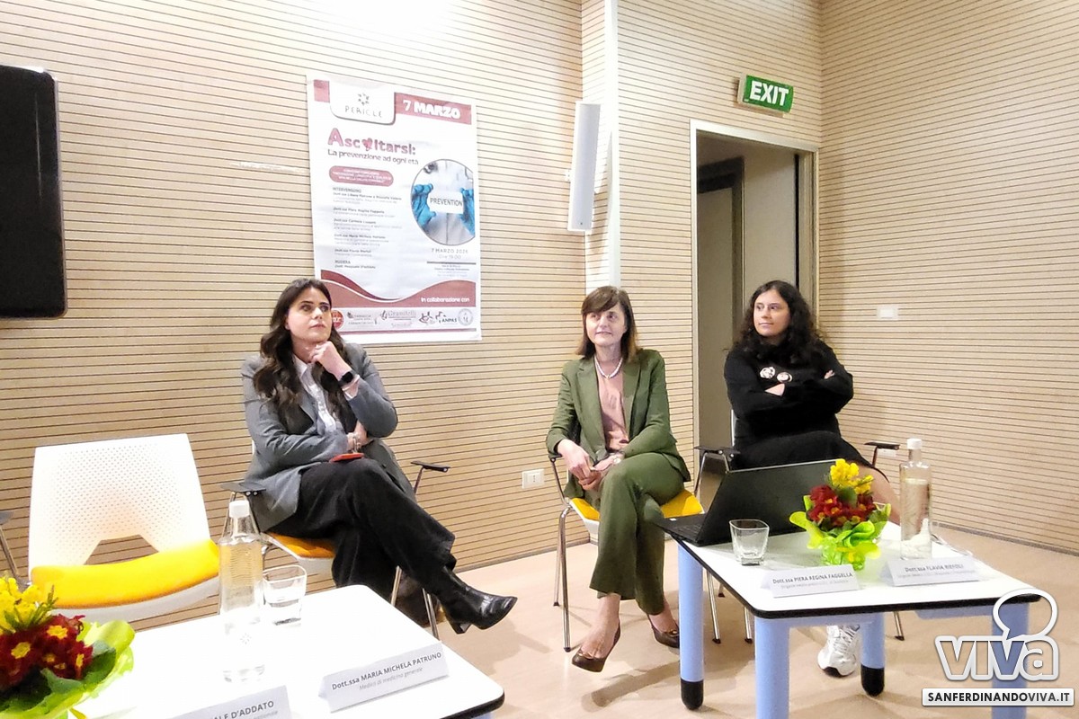 La dott.ssa Libera Falcone (dirigente medico in Ginecologia e Ostetricia dell'ospedale Tatarella di Cerignola) ha evidenziato prima di tutto l'importanza del parlare con un/una professionista e di trattare i primi disturbi della perimenopausa. Ha poi parlato della rilevanza dei controlli, spiegando cos'è il virus HPV, l'importanza della vaccinazione contro lo stesso e la sua pericolosità sia per l'uomo, ma soprattutto per la donna, nella quale – nei casi peggiori – può trasformarsi in tumore al collo dell'utero.