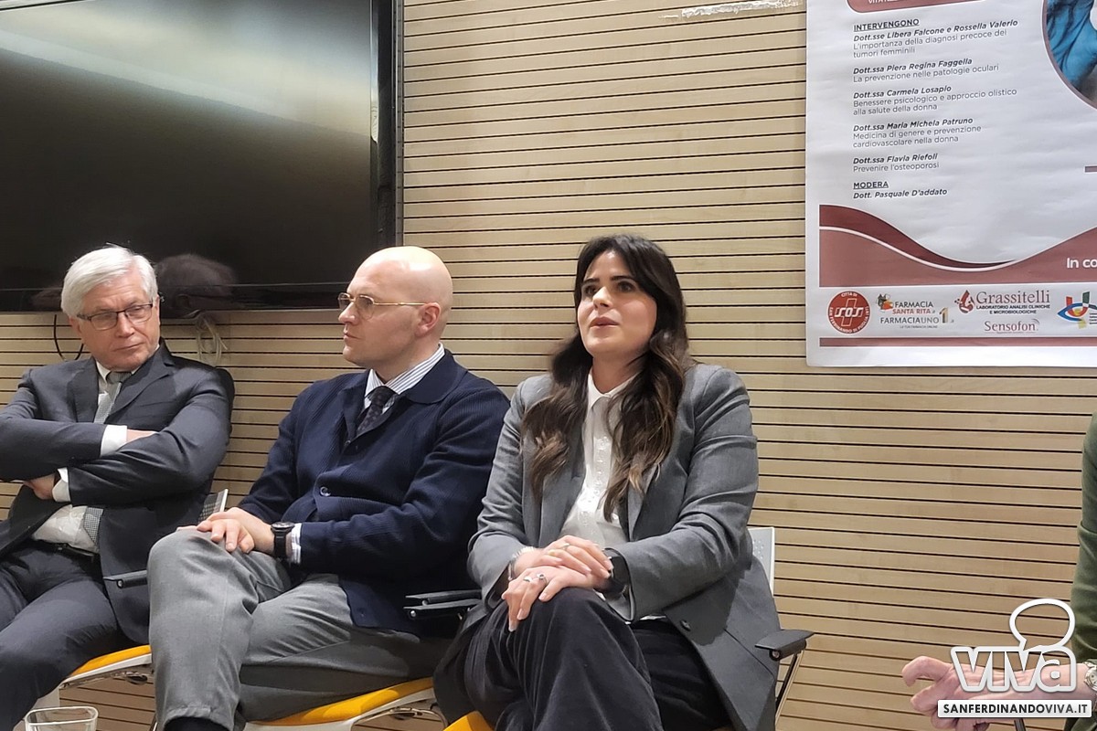 Un gruppo tutto al femminile che ha visto parlare: le dott.ssa Libera Falcone e Rossella Valerio della diagnosi precoce dei tumori femminili, la dott.ssa Piera Regina Faggella della prevenzione nelle patologie oculari, la dott.ssa Carmela Losapio del benessere psicologico e approccio olistico alla salute della donna, la dott.ssa Maria Michela Patruno della medicina di genere e prevenzione cardiovascolare nella donna e la dott.ssa Flavia Riefoli di come prevenire l'osteoporosi.