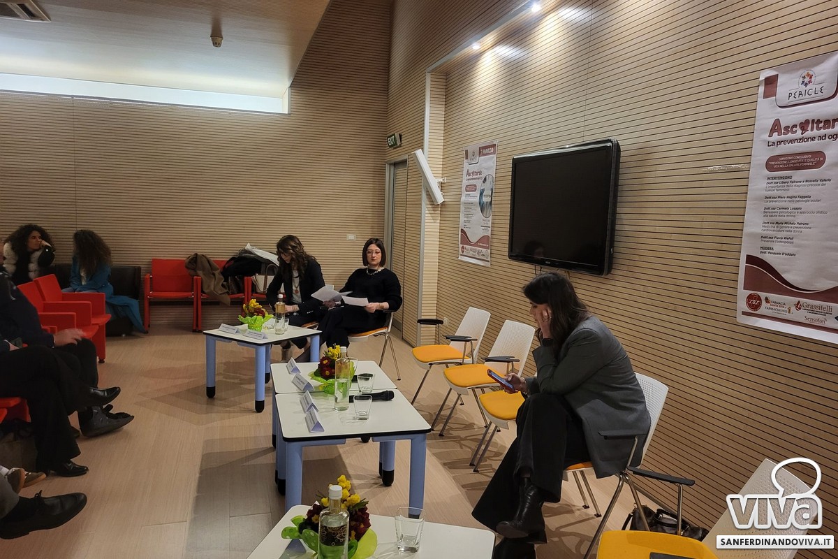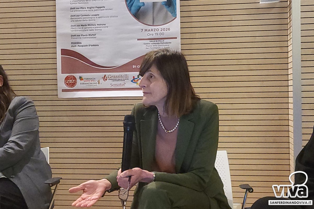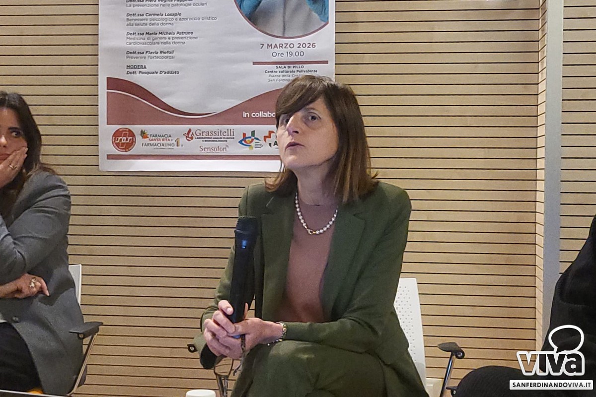 La dott.ssa Piera Regina Faggella (dirigente medico presso U.O.C. di Oculistica) ha conferito sull'aspetto oculistico: "Anche in oculistica abbiamo una differenza di genere. Ci sono molte patologie croniche degenerative che colpiscono maggiormente le donne. Man mano che si va nel post menopausa c'è una diminuzione degli estrogeni, quindi viene meno il ruolo protettivo degli stessi e succede che facilmente le donne siano colpite da patologie oculari degenerative e croniche. È quindi importante prevenire, parlo di una prevenzione primaria, quindi in assenza di sintomi". La dott.ssa ha poi continuato parlando e fornendo dati sulla retinopatia diabetica, sul glaucoma e sulla maculopatia.