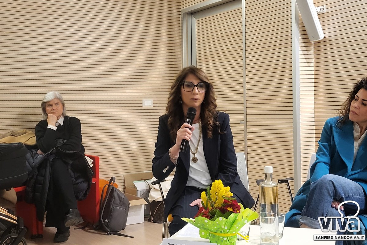 La dott.ssa Carmela Losapio – psicologa - ha parlato della realtà prettamente femminile del consultorio, sia dalla parte delle professioniste che vi lavorano, sia da parte dell'utenza. Si è concentrata poi sul valore dell'aspetto mentale: "Grazie anche a varie studi scientifici sappiamo che la salute mentale e la salute fisica sono strettamente interconnesse". La dott.ssa Losapio ha poi parlato anche della prevenzione inerente la situazione di post parto della donna: "c'è una sintomatologia precisa che colpisce l'85% delle donne, che non è depressione post partum, ma è la baby blues o maternity blues, una sindrome che risolve spontaneamente in una decina di giorni" - sicuramente poco conosciuta da tante donne e spesso confusa con la depressione post partum.