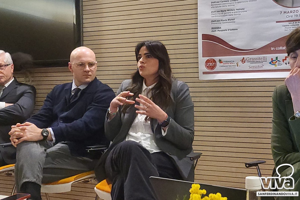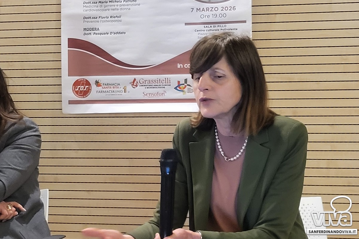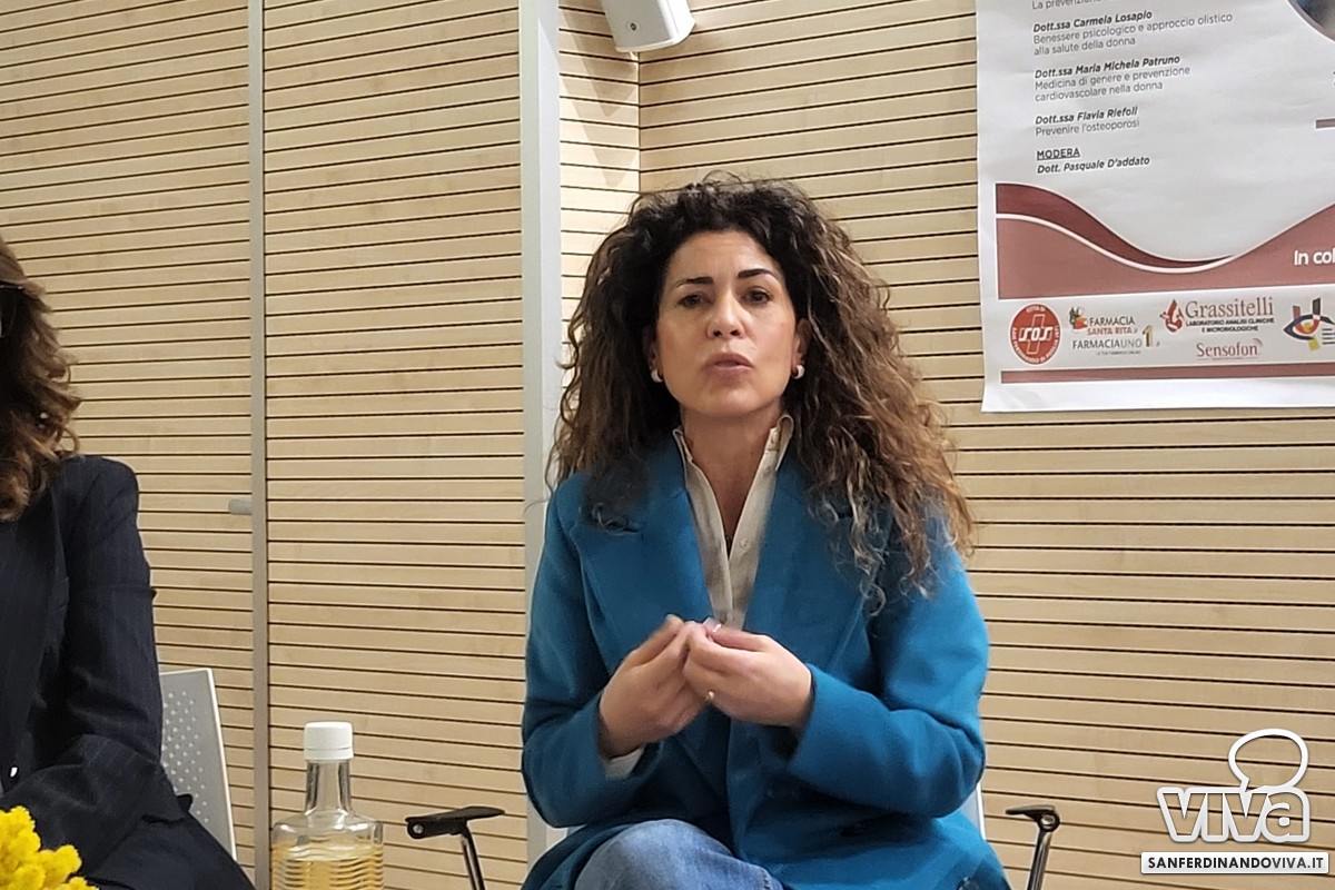 È stato poi il turno della dott.ssa Flavia Riefoli (dirigente medico U.O.C. Ortopedia e Traumatologia al policlinico di Bari) la quale ha parlato dell'osteoporosi: "Una malattia sistemica dello scheletro, per cui la densità minerale dell'osso viene ridotta, quindi si ha un alto o comunque aumentato rischio di fratture. Si distingue in osteoporosi primitiva e quindi quella della donna in menopausa e quella senile. Ovviamente la prima la diagnostichiamo molto di più nelle donne in menopausa perché ovviamente ha una insorgenza precoce rispetto all'uomo, nel quale spesso non la si diagnostica proprio. Molto spesso ci sono quelle forme secondarie anche molto precoci nelle donne che dopo il tumore al seno fanno la terapia ormonale. Si fanno una serie di calcoli matematici sulla densità ossea, che è il gold standard per la diagnosi dell'osteoporosi, dove si va a valutare quanto è denso il nostro osso, quindi la densità minerale ossea".