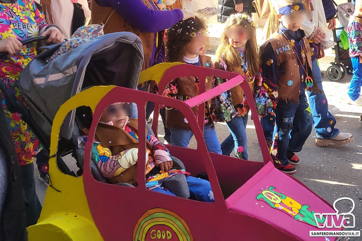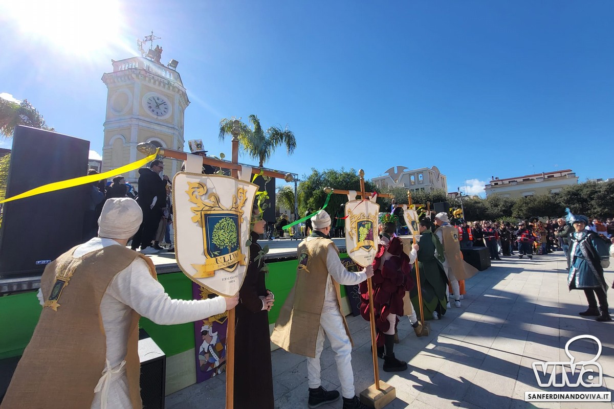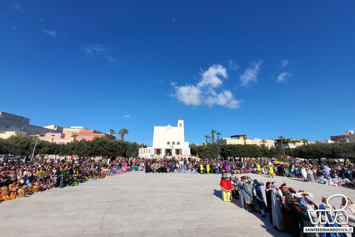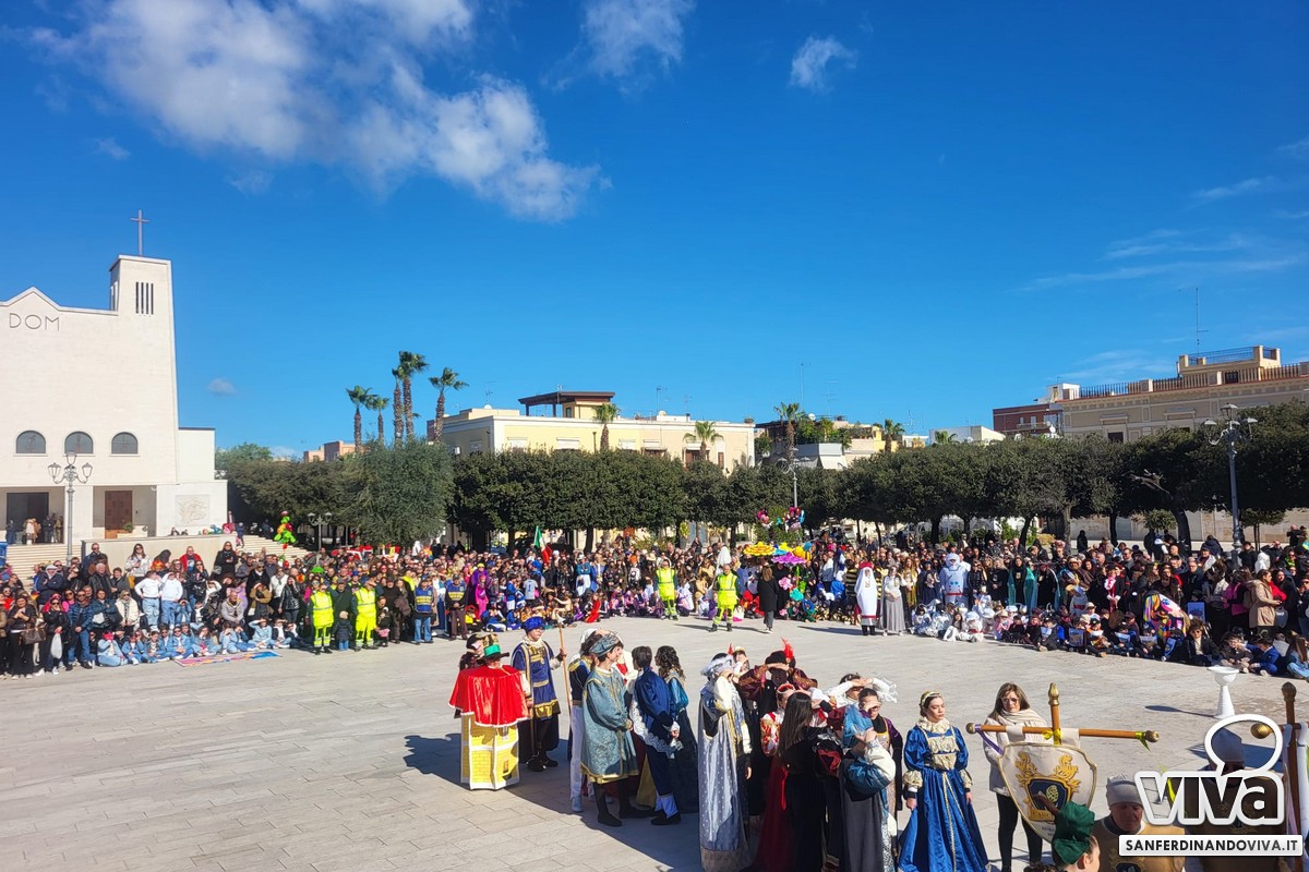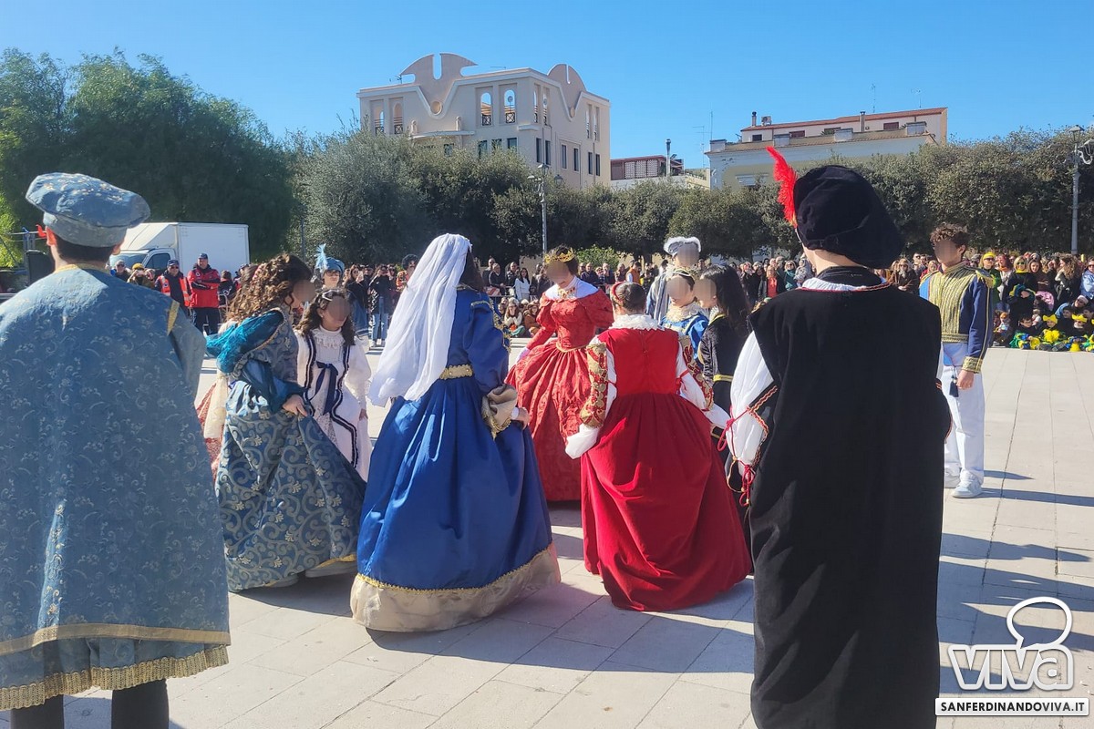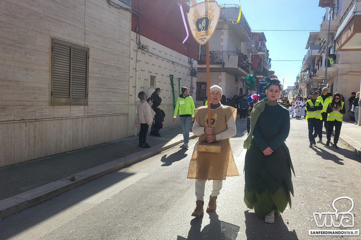Una partenza iniziata in via Gramsci – presso l'area mercatale – con numerose famiglie gioiose tra coriandoli, travestimenti e addobbi sui balconi che rendevano il tutto più colorato e divertente. La parata è terminata in Piazza della Costituzione, dove ad accoglierla c'erano gli studenti della scuola Papa Giovanni XXIII vestiti con abiti storici: hanno allietato il momento attraverso il 'il ballo dei reali interpreti'.
