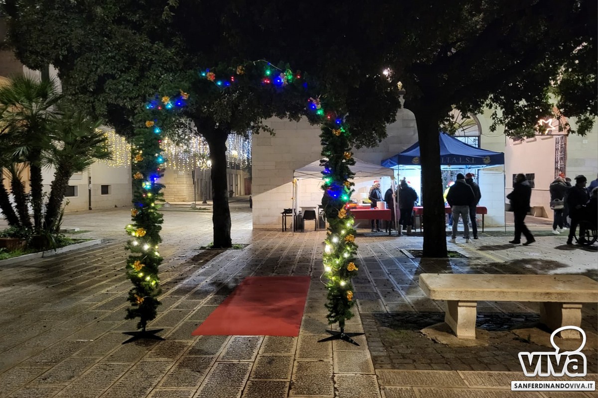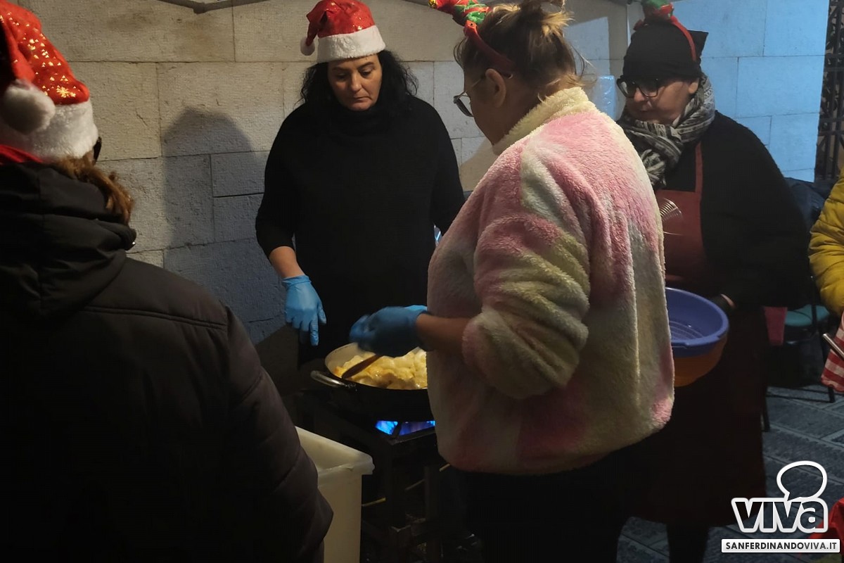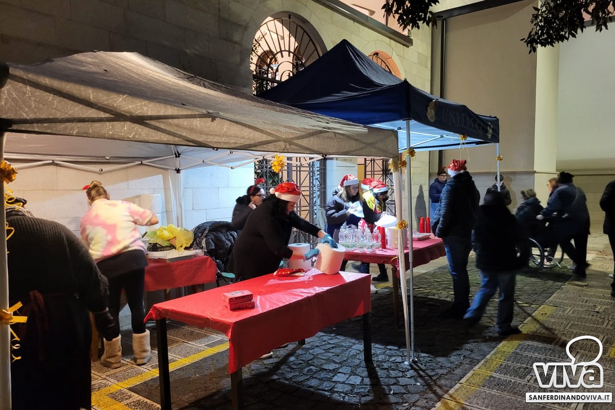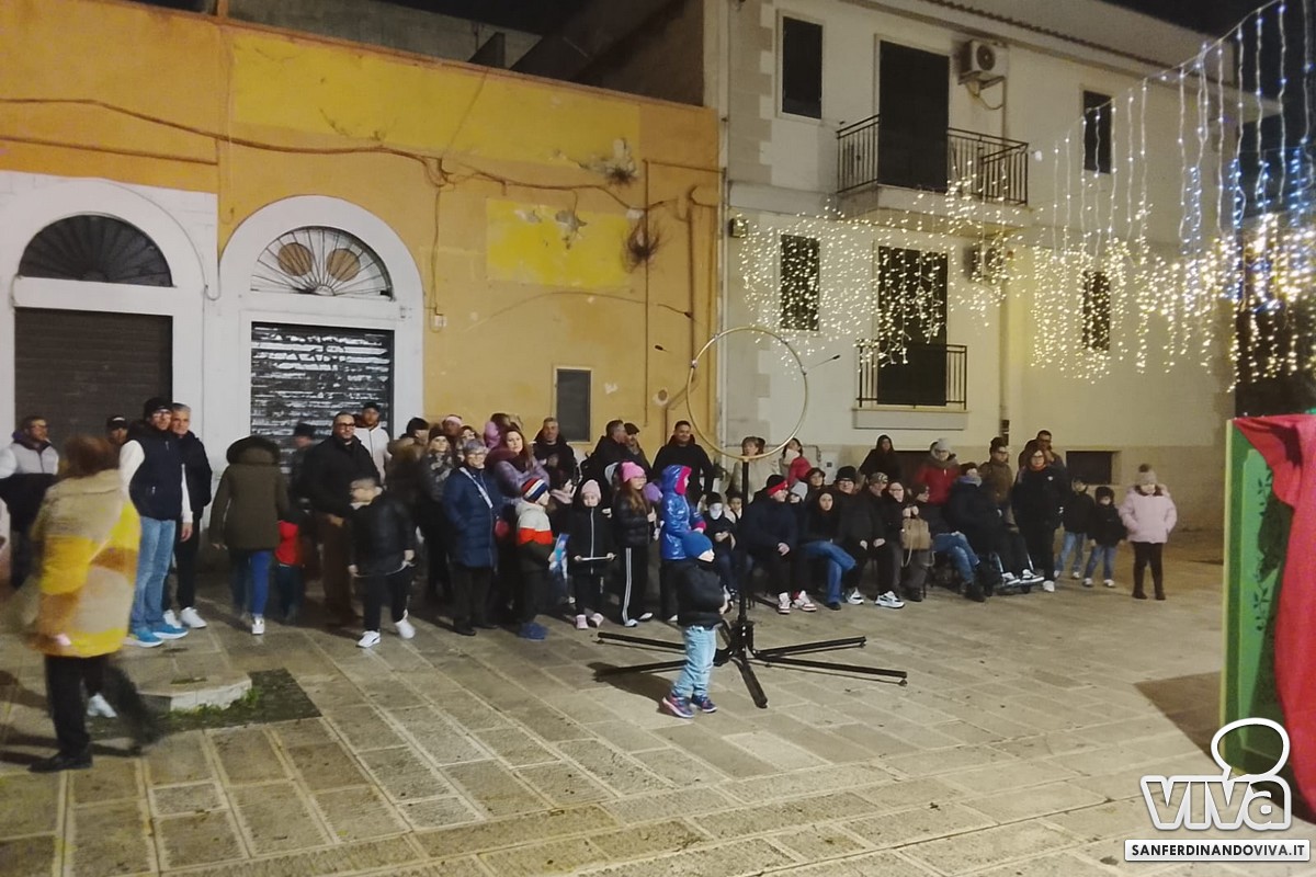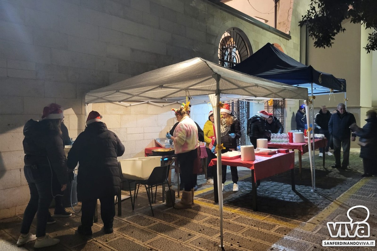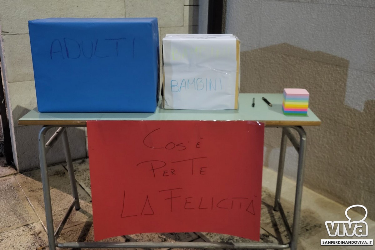 A San Ferdinando di Puglia una serata in pieno stile natalizio, quella svoltasi pochi giorni fa nei pressi della Chiesa Madre: con frittelle preparate da signore che indossavano cappellini natalizi e un angolo riservato ad un'attività rivolta ad adulti e bambini dove gli stessi avrebbero dovuto rispondere ad una domanda: 'Cos'è per te la felicità?"