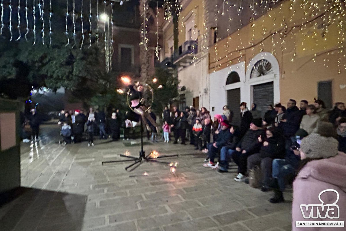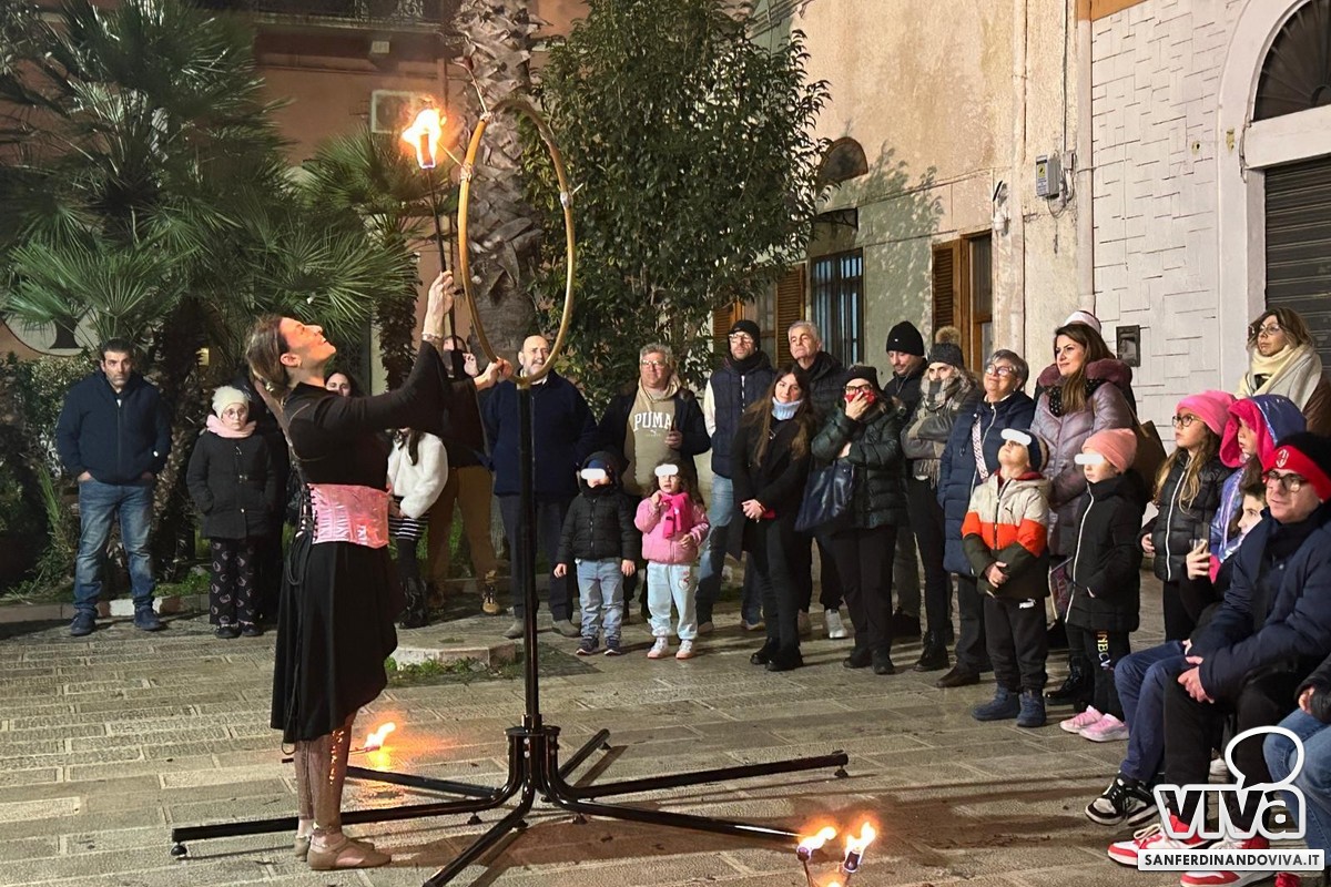 Ma il momento più coinvolgente della serata ha riguardato un teatrino, precisamente il Teatro delle Lucciole, degli 'Artisti di strada di Puglia' - non quello tradizionale con le marionette - ma uno spettacolo di teatro fatto di ombre cinesi e installazioni magiche che hanno utilizzato luci e silhouette per creare un'atmosfera che ha incantato: il tutto unendo arte, narrazione e magia visiva per grandi e piccini. Uno spettacolo che racconta fiabe ispirato alla tradizione del teatro delle ombre cinesi.