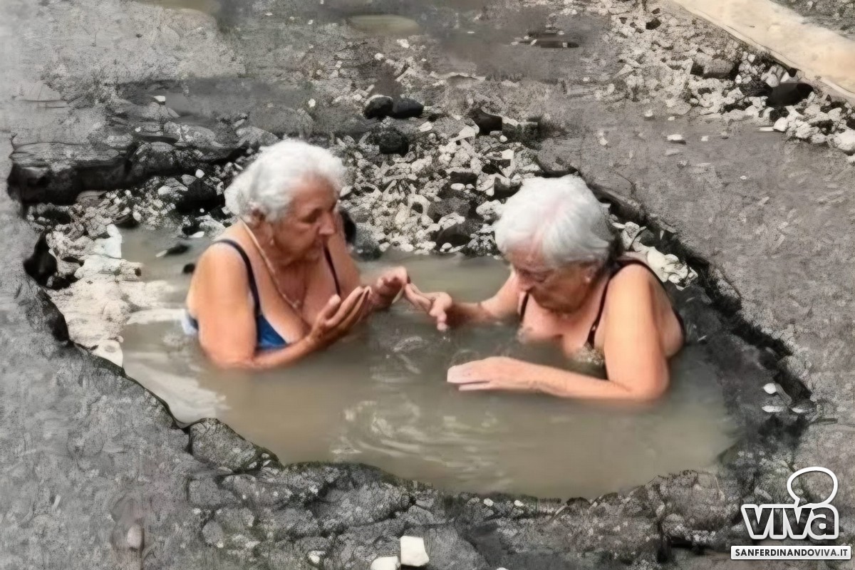 C'è chi ormai su questo ci scherza su, postando sul gruppo Facebook del paese immagini (realizzate con l'intelligenza artificiale) nelle quali compare: un pescatore intento a pescare nell'acquitrino di una profonda buca, signore anziane intente a farsi un bagno, una sirena appostata accanto alla buca. Insomma tanta fantasia e sana – o forse pungente - ironia per sdrammatizzare un po' su un argomento di cui si sta parlando molto.