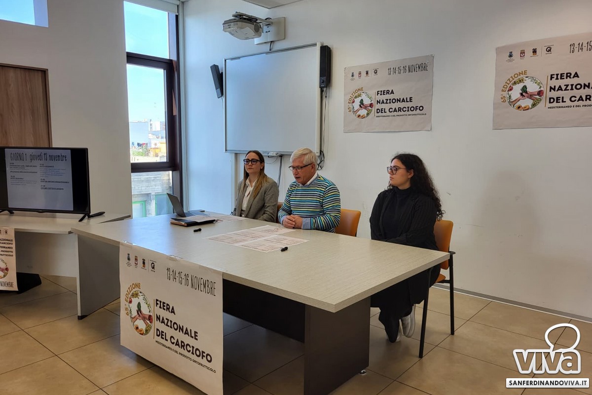 "È una fiera ricca, produttiva, fatta per potenziare e migliorare le capacità nostre, del nostro territorio. Noi investiamo in questo, ci teniamo e uno dei compiti fondamentali dei comuni è quello di favorire lo sviluppo e la crescita dei propri territori" – termina il sindaco.Oltre al sindaco Lamacchia ha preso la parola anche l'ass Daniela Rondinone: "Aggiungo solo che, ovviamente, durante la fiera ci saranno anche le attività in collaborazione con le scuole. Abbiamo organizzato anche dei laboratori tematici sul carciofo – grazie anche alle ragazze del servizio civile che ci fanno da supporto - rivolti non solo alle scuole. Ci sarà anche un laboratorio del carciofino, fatto anche in collaborazione con il centro Generazione Insieme. Faremo scoprire ai ragazzi proprio l'attività pratica, quindi come si arriva al carciofino sott'olio – facendo riferimento a tutti i passaggi, dalla semplice pulizia al confezionamento – i ragazzi avranno la possibilità di portare a casa un piccolo souvenir di questa fiera".